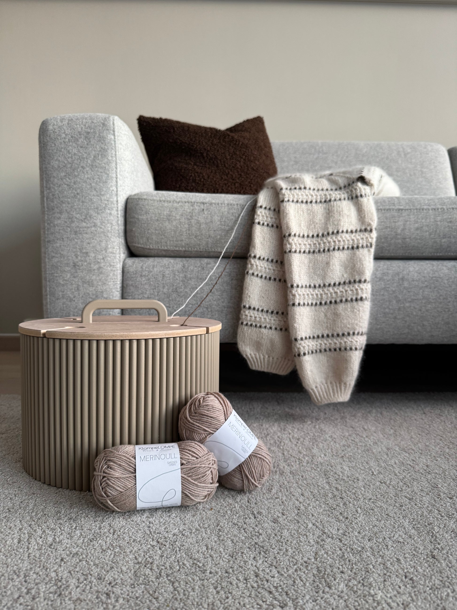 - Oppbevaringsboks for garn som holder nøster ryddige, støvfrie og flokefrie